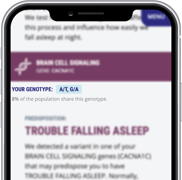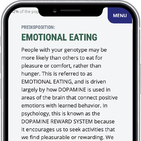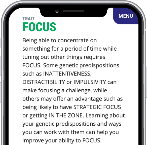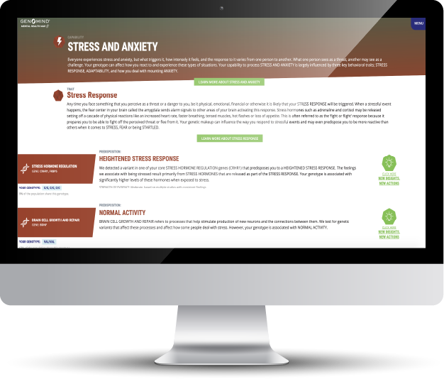 Each report identifies possible mental health predispositions based on your genotype. This means you are more likely to react or behave a certain way.